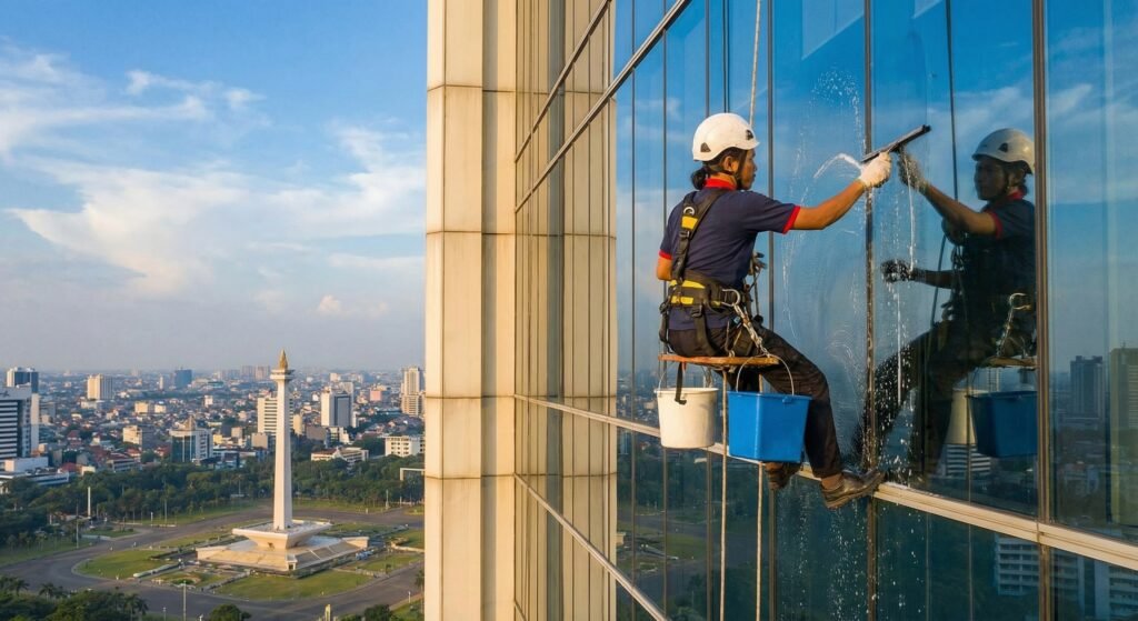 Pemasangan ACP dan pembersihan kaca gedung bertingkat memerlukan keahlian kerja di ketinggian. PT AHPINDO berpengalaman menangani proyek cerobong, tower, dan berbagai gedung di banyak lokasi.
