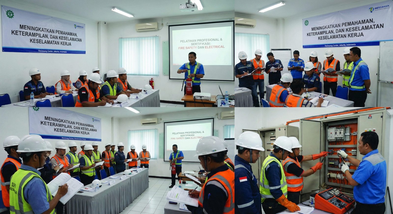 Menyelenggarakan pelatihan/sertifikasi Fire Safety dan Electrical untuk meningkatkan pemahaman, keterampilan, dan keselamatan kerja.