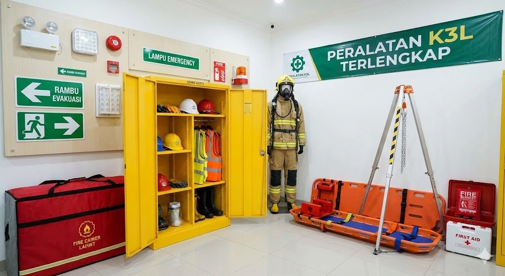 PT AHPINDO menyediakan peralatan K3 seperti lemari safety, APD, breathing apparatus, lampu emergency, tandu, tripod, fire blanket, P3K, dan rambu evakuasi. Berpengalaman dalam pengadaannya.