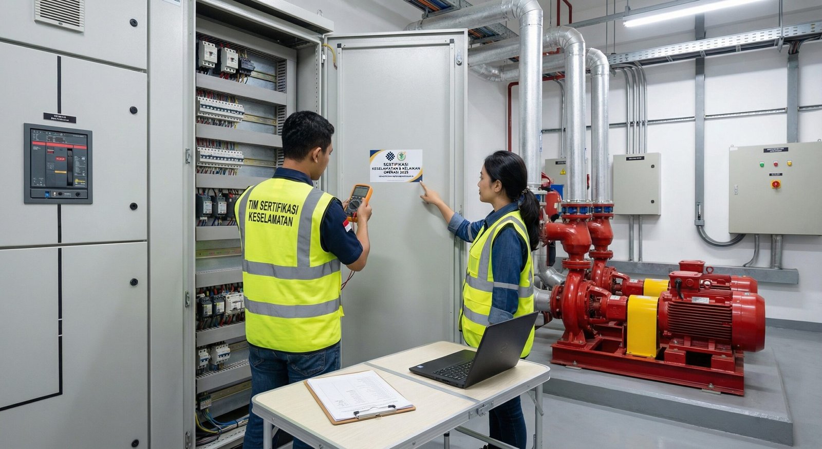 Untuk itu dalam upaya hal tersebut diatas dan dalam upaya pemenuhan peraturan perundangan tentang ijin pemakaian peralatan di tempat kerja maka peralatan : Listrik , Penangkal Petir ,Genset , Pesawat angkat angkut , Fire Alarm , Fire Hydrant dan lain lainnya wajib disertifikasi kelayakannya untuk ijin pemakaian peralatan dimaksud oleh DEPNAKER yang sebelumnya terlebih dahulu dilakukan uji pemeriksaan.